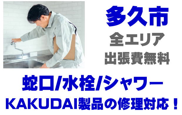 多久市で水栓メーカーKAKUDAIの修理業者をお探しなら当社までお気軽にお問い合わせください。蛇口の水漏れ、シャワーの故障などカクダイ製に関するトラブルなら何でもご相談ください。